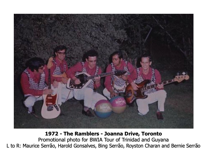 Bing Serrão and The Ramblers brought their music from Guyana to Toronto in the latter part of 1964. Guyanese and West Indians new to Toronto flocked to the Jamaican Latin Quarter Club in downtown Toronto, now the site of the Eaton Centre. It was here, every Friday and Saturday night, that the group played, even on cold winter nights, to capacity audiences.